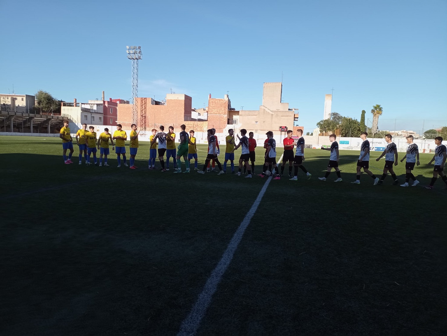 Un gol d’Angel Alfaro a la treta d’un córner al poc d’iniciar el duel ficava les coses de cara pels nostres, si bé en la primera jugada de l’encontre ja s’havia disposat d’una claríssima ocasió de gol. Però ha estat poc abans de la mitja hora que en una recuperació i posterior contra, Miguel Richart a l’igual que fera el Alginet, veia porteria rival, resultat en el que s’ha aplegat al descans si bé hagués pogut estar més ampli si Jara i Alfaro hagueren materialitzat dues clares ocasions de gol.