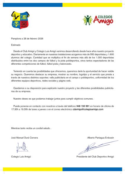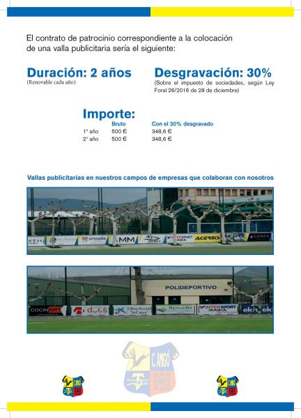Teniendo en cuenta las posibilidades que ofrecemos, queremos darle la oportunidad de hacer visible su negocio. Queremos destacar su empresa, mostrar su nombre, logotipo y el servicio que presta a través de nuestros distintos soportes: valla publicitaria en el campo o polideportivo, uniformidad de los diferentes equipos deportivos, redes sociales y página web. Ponte en contacto con nosotros y te daremos toda la información necesaria.