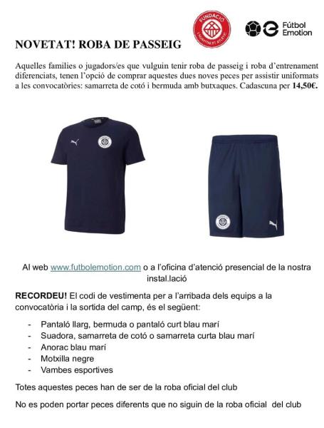 El pack de roba per a la temporada 2025-2026 ja es troba a la venta. Els jugadors/es nous al club han de comprar obligatòriament el pack oficial complet. Els jugadors/es antics només han de comprar, obligatòriament, la samarreta de partit a l'oficina (en el cas de necessitar prendes sueltes hi ha disponible la samarreta i el pantaló d'entrenament al web de FEMOTION).