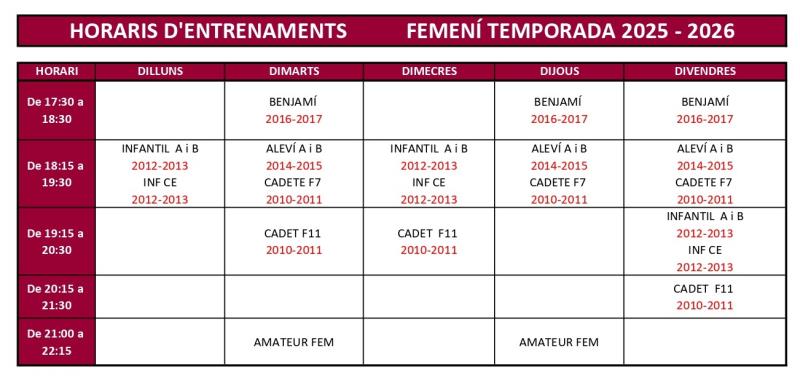 2- Els horaris dels entrenaments de porters seran durant el mateix entrenament de l'equip (en cas d'haver-hi canvis, us ho comunicaran els mateixos entrenadors/es)