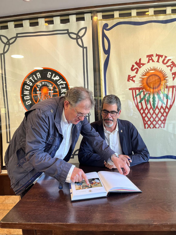 El Alcalde de Donostia-San Sebastián, Eneko Goia, nos ha visitado con motivo de la celebración del cincuentenario del Club y durante cerca de una hora ha recorrido las instalaciones de Askatuak y compartido de forma distendida la toma de un café con unas pastas.