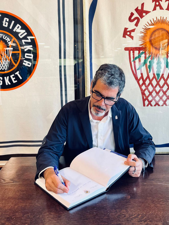 Eneko Goia ha procedido también a firmar en el Libro de 'Ilustres' de Askatuak con un escrito que en su apéndice final dirige a nuestro presidente: "Iñaki, urrezkoa zera".